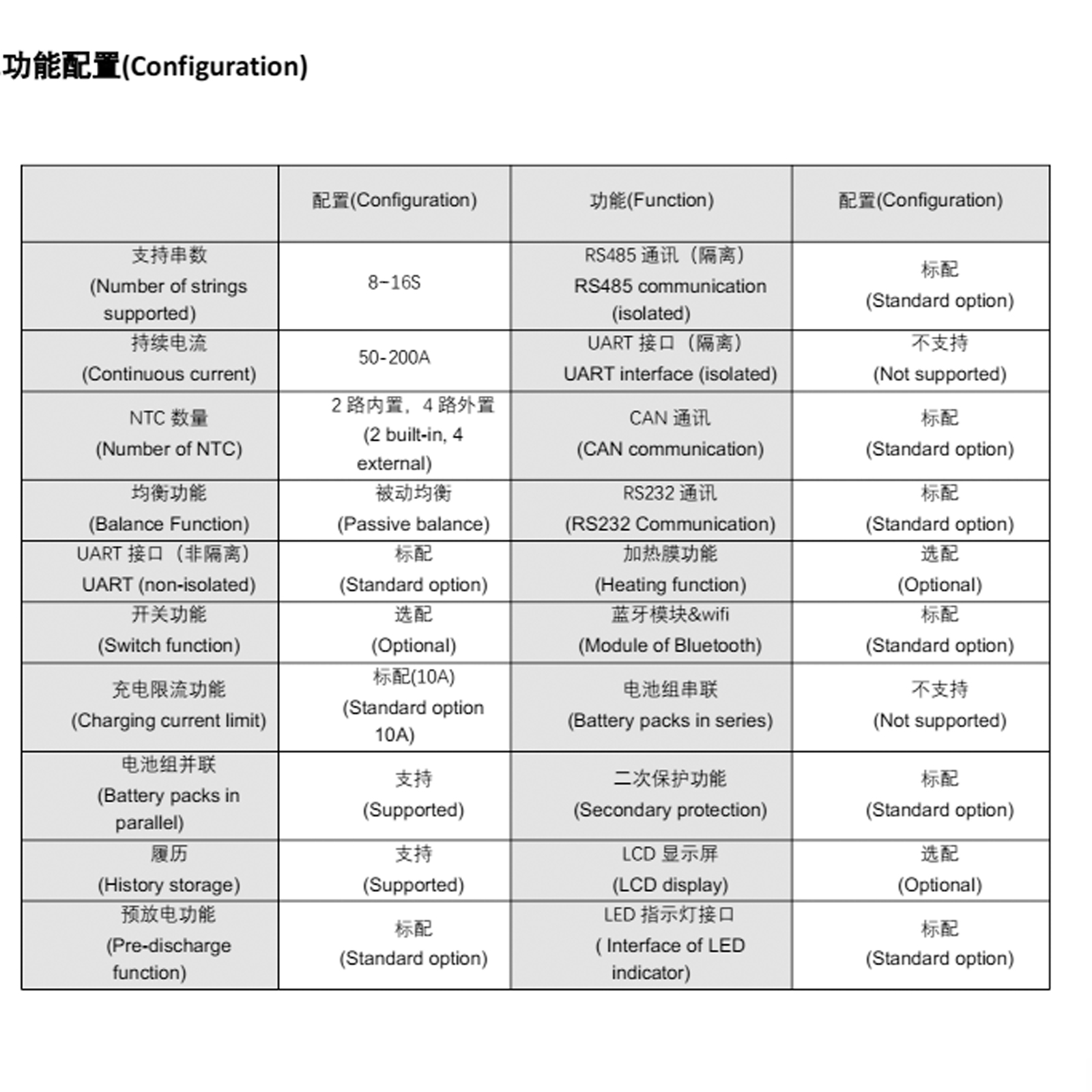 | Number of Strings | 8-16S SMART BMS | |||